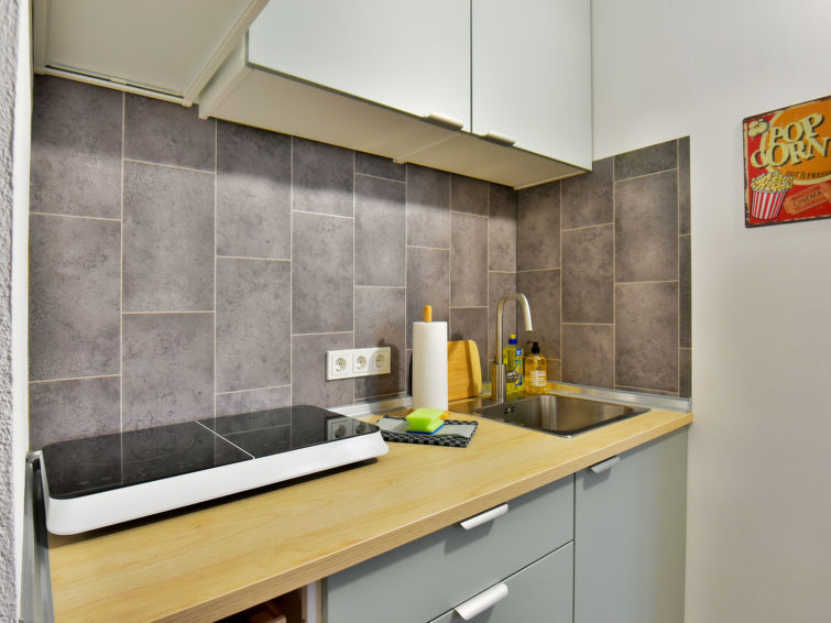"Liz", appartement 2-kamers 26 m2 op 2 verdiepingen. Volledig gerenoveerd in 2023, doelmatig en modern ingericht: woonkeuken (2 keramische glas kookplaten, broodrooster, waterkoker, magnetron, elektrische koffiemachine) met eettafel en Sat-TV (Flatscreen TV). Douche/WC. Bovenverdieping: met afgeschuinde daken, 1 groot kamer met 1 2-pers bed (180 cm, lengte 200 cm). Verwarming. Ter beschikking: kinderstoel, kinderbed. Internet (WiFi, gratis). Niet rokers woning. Maximaal 1 huisdier/hond toegestaan. Rookmelders, brandblusser.