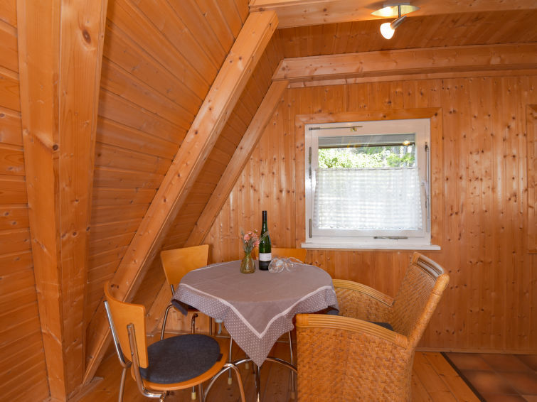 Huis 2-kamers 60 m2 op 3 verdiepingen. Gezellig en met veel hout ingericht: souterrain: douche/WC, Sauna. Bovenverdieping: woon-/eetkamer met Sat-TV (Flatscreen TV), CD-speler en DVD. Uitgang naar het balkon. Kookhoek (oven, 4 keramische glas kookplaten, broodrooster, waterkoker, magnetron, diepvriezer, elektrische koffiemachine) met eettafel. Zolderverdieping: (ladder) open, 1 kamer met afgeschuinde daken met 2 bedden en 1 2-pers bed. Gas-verwarming. Balkon 12 m2, terras 25 m2. Terrasmeubelen, balkonmeubilair, barbecue, ligstoelen (2). Mooi uitzicht. Ter beschikking: Internet (Internet (WiFi), gratis). Parkeerplaats (1 Auto) bij het huis. Rookvrij huis. Maximaal 3 huisdieren/honden toegestaan. Rookmelders, brandblusser.
