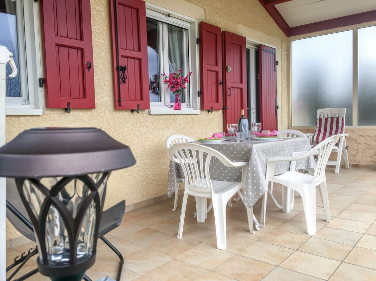 Chalet 3-kamers 55 m2. Mooi ingericht: woon-/eetkamer met zwedenkachel en TV (Flatscreen TV). Uitgang naar het terras. 2 kamers, elke kamer heeft 1 2-pers bed (140 cm, lengte 190 cm). Open keuken (4-pits kookplaat, afwasmachine, magnetron, elektrische koffiemachine). Douche/WC. Elektrische verwarming. Terras 18 m2. Terrasmeubelen, ligstoelen (2). Uitzicht op het bos. Ter beschikking: wasmachine, kinderbed tot 3 jaar. Rookvrij huis. Rookmelders.