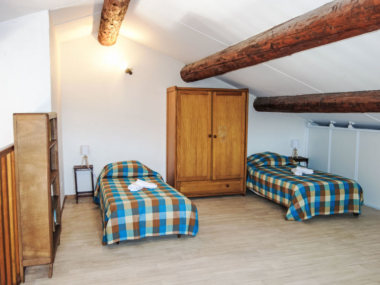 Appartement 3-kamers 77 m2 op de 2e verdieping. Comfortabel en mooi ingericht: woon-/eetkamer met TV (Flatscreen TV). Uitgang naar het terras. 1 kamer met 1 bed (100 cm, lengte 190 cm), 1 slaapplaats (80 cm, lengte 190 cm). Keuken (mini-oven, afwasmachine, 4 keramische glas kookplaten, broodrooster, magnetron, diepvriezer, elektrische koffiemachine). Uitgang naar het balkon. Douche, aparte WC. Elektrische verwarming. Bovenverdieping: (steile trap) groot galerij met afgeschuinde daken, hoogte van het plafond 85 - 190 cm met 3 bedden (80 cm, lengte 190 cm). Terras 8 m2. Terrasmeubelen. Ter beschikking: wasmachine. Internet (Internet (WiFi), extra). Parkeerplaats bij het huis. 1 klein huisdier/hond toegestaan. TV alleen FR. Rookmelders. Aanbod door een particulier volgens art. 155, IV van CGI. 83112001641ON