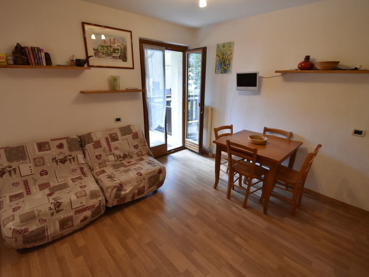 "Apt 14", studio 1-kamer 35 m2, op verhoogde begane grond. Eenvoudig en doelmatig ingericht: woon-/eetkamer met 1 2-pers bed, eettafel en TV (Flatscreen TV). Uitgang naar het balkon. Kookhoek (oven, 4 keramische glas kookplaten). Douche/bidet/WC. Balkon. Balkonmeubilair. Uitzicht op de bergen en het dal. Ter beschikking: haardroger. Internet (WiFi, gratis). Niet rokers woning. Maximaal 1 huisdier/hond toegestaan. Brandblusser, geen lift. IT022039B457JR2FZH