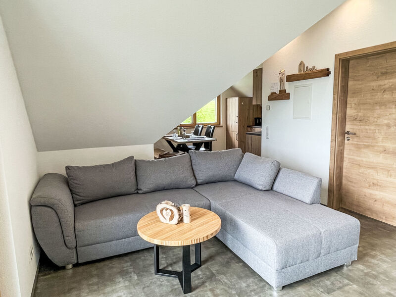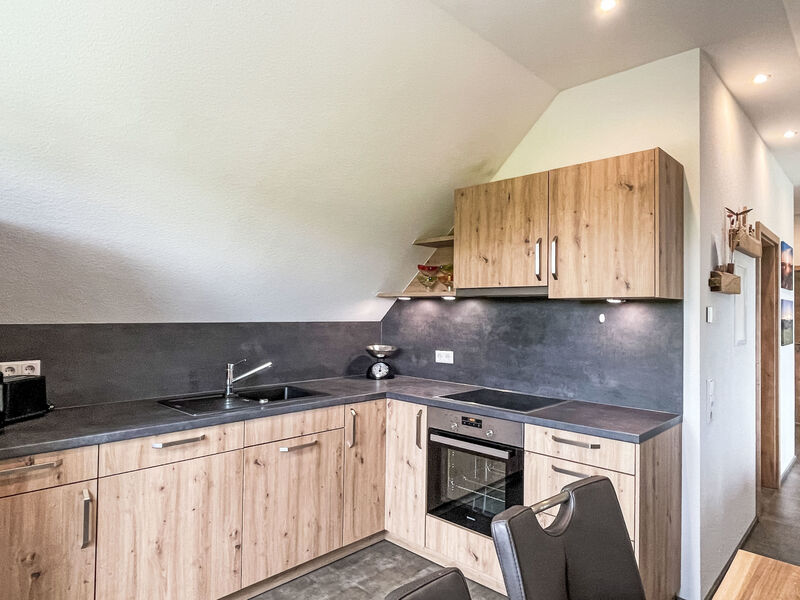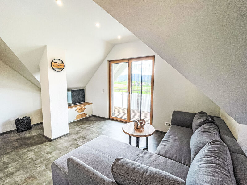 "Panoramablick", appartement 2-kamers 65 m2, op de bovenste verdieping. Het objekt is geschikt voor 2 volwassenen + 2 kinderen. Licht, gedeeltelijk afgeschuinde daken, modern en gezellig ingericht: woon-/slaapkamer met 1 2-pers divanbed (140 cm, lengte 200 cm), Sat-TV (Flatscreen TV). Uitgang naar het balkon. 1 kamer met 1 2-pers bed (2 x 90 cm, lengte 200 cm). Open keuken (oven, afwasmachine, 4 keramische glas kookplaten, broodrooster, waterkoker, elektrische koffiemachine) met eettafel. Douche/WC. Verwarming. Klein balkon. Balkonmeubilair. Mooi panoramazicht op de bergen. Ter beschikking: Internet (WiFi, gratis). Parkeerplaats (1 Auto) bij het huis. Niet rokers woning. Rookmelders.