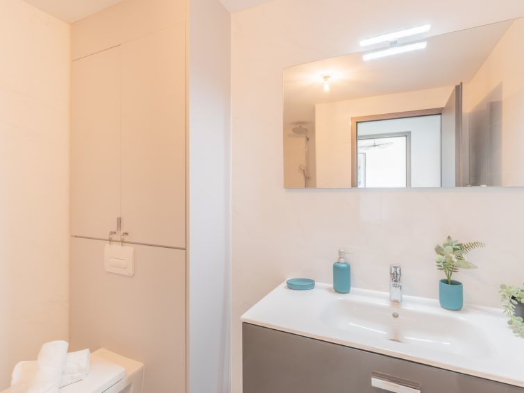 Appartement 2-kamers 51 m2 op de 4e verdieping. Zeer mooi en modern ingericht: woon-/eetkamer met 1 divanbed (140 cm, lengte 190 cm), TV (Flatscreen TV). Uitgang naar het terras. 1 kamer met 1 2-pers bed (160 cm, lengte 200 cm). Open keuken (oven, afwasmachine, 3 inductiekookplaten, broodrooster, waterkoker, magnetron, diepvriezer, elektrische koffiemachine). Douche/WC. Elektrische verwarming, air-conditioning. Terras 8 m2. Terrasmeubelen. Ter beschikking: wasmachine, kinderstoel, kinderbed. Internet (WiFi, gratis). Geschikt voor families. Niet rokers woning. Rookmelders. 2A247000142AF