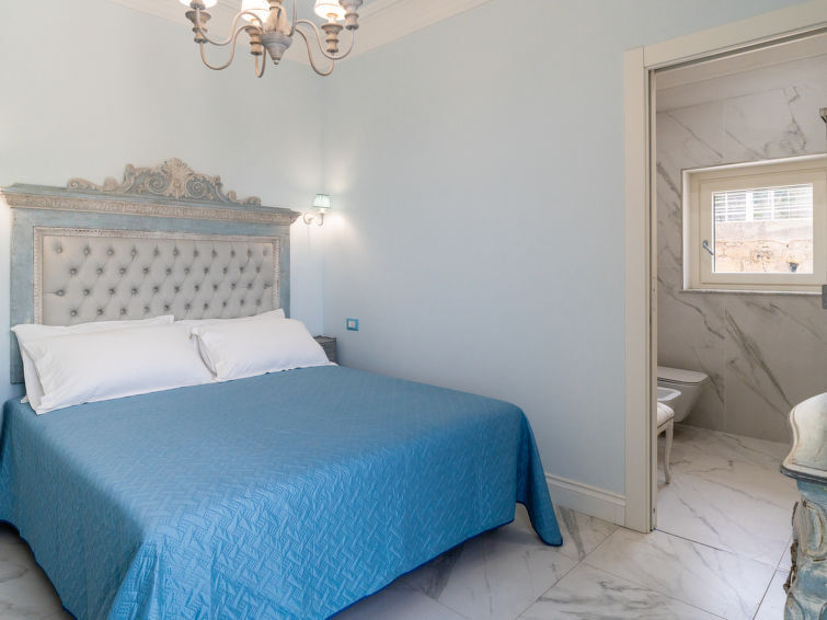 "Celeste", appartement 3-kamers 120 m2 op de 1e verdieping. Luxueus en smaakvol ingericht: woon-/eetkamer. 1 2-pers. kamer met douche/bidet/WC. 1 kamer met 1 2-pers bed (160 cm, lengte 200 cm). Open keuken (oven, 4 kookpitten (vlammen), broodrooster, waterkoker, elektrische koffiemachine). Douche/bidet/WC. Gas-verwarming. Verwarming alleen beschikbaar van 01.11. tot 15.04. Zeer mooi panoramazicht op zee. Ter beschikking: wasmachine, strijkijzer, klamboe, kinderbed tot 2 jaar, haardroger. Internet (Internet (WiFi), gratis).