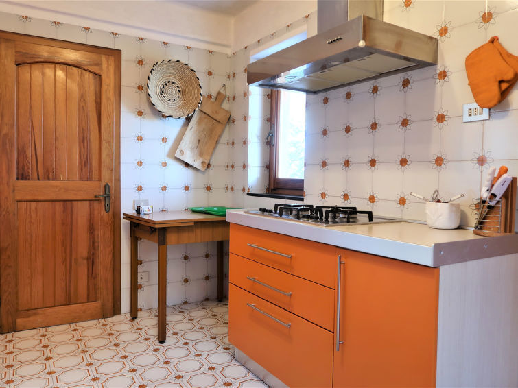 Huis 5-kamers 120 m2. Doelmatig en comfortabel ingericht: groot woon-/eetkamer met Sat-TV. Uitgang naar de zitplaats in de tuin. Keuken (4-pits kookplaat, oven, afwasmachine, magnetron, diepvriezer, elektrische koffiemachine). Douche/bidet/WC. Geen verwarmingsmogelijkheid. Bovenverdieping: 1 2-pers. kamer. Uitgang naar het terras. 2 kamers, elke kamer heeft 1 x 2 stapelbedden. 1 kamer met 1 bed. Bad/bidet/WC. Geen verwarmingsmogelijkheid. Ruime zithoek in de tuin gedeeltelijk overdekt, tuin. Terrasmeubelen, ligstoelen. Mooi uitzicht op zee. Ter beschikking: wasmachine. IT090062C2000Q2142