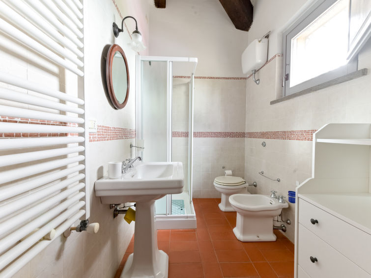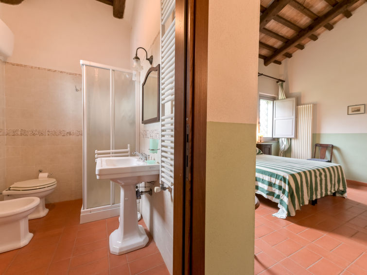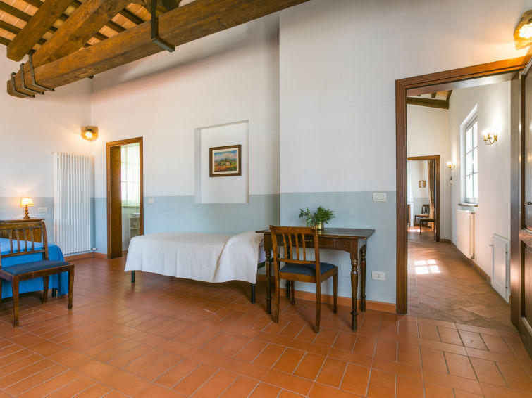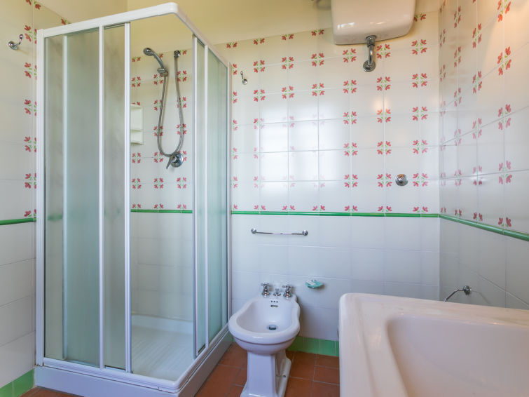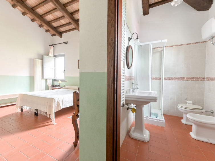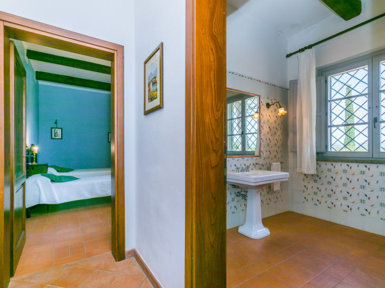 Villa 6-kamers 365 m2 op 2 verdiepingen. Antiek en luxueus ingericht: groot woonkamer met open haard. Uitgang naar de zitplaats in de tuin. Kleine woonkamer met TV. 1 2-pers. kamer 22 m2. 1 kamer 20 m2 met 2 bedden. 2 kamers, elke kamer heeft 1 2-pers bed (160 cm), douche/bidet/WC. Keuken 28 m2 (4-pits kookplaat, oven, afwasmachine, broodrooster, elektrische koffiemachine) met eettafel. Uitgang naar de tuin, pergola. Douche/bidet/WC, aparte WC. Bovenverdieping: 1 2-pers. kamer 28 m2 met open haard en douche/bidet/WC. 1 kamer 28 m2 met 1 bed, 1 2-pers bed en douche/bidet/WC. Uitgang naar het terras. Zithoek in de tuin, tuin. Barbecue. Mooi uitzicht op het landschap. Ter beschikking: wasmachine, strijkijzer, klamboe, haardroger. Parkeerplaats. Niet rokers woning. Maximaal 2 huisdieren/honden toegestaan. Privé ingang. Geen interne verbinding tussen de aparte wooneenheden. IT053014B5TUJ7UD5C