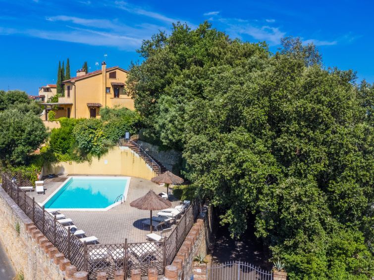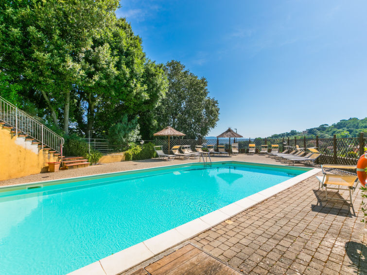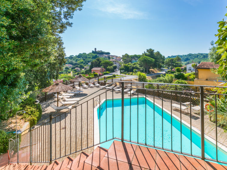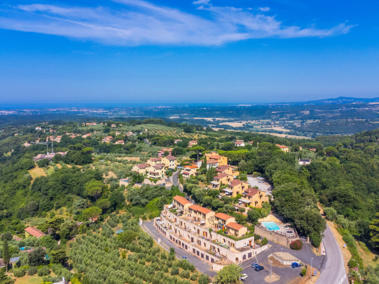 Residentie "Il Castello", van 2 verdiepingen. 4 huizen in de woning. 16 appartementen in de woning. Aan de rand van de plaats, 700 m van het centrum van Montescudaio, 11 km van zee, 11 km van het strand. Voor medegebruik: terrein, openluchtzwembad (10 x 20 m, seizoensgebonden beschikbaarheid: 15.Jun. - 15.Sep. openingstijden zwembad: 09:00-14:00 en 16:00-19:00). Voor alleengebruik: tuin 50 m2 (omheind). Wissel van linnengoed (extra wissel te betalen). Wissel van handdoeken (extra wissel te betalen). Parkeerplaats. Winkel, levensmiddelenwinkel 700 m, restaurant 150 m, bushalte 80 m. Gesloten residentie met een elektrische deur.