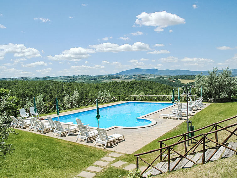 Landhuis "Malagronda", 400 m boven zeeniveau, gerenoveerd, omgeven door bomen en weiden. 6 appartementen in de woning. 8 km van het centrum van Città della Pieve, rustige, verhoogde ligging, 12 km van het meer. Voor medegebruik: park 7.000 m2, planten en bomen, mooie tuin ter ontspanning, openluchtzwembad (14 x 7 m, 120 - 180 cm diepte, seizoensgebonden beschikbaarheid: 01.Mei. - 30.Sep.) met zout-elektrolyse. Buitendouche, tafeltennis, basketbal, volleybal, tuinmeubelen, barbecue, stookplaats, kinderspeelplaats. In het huis: Internet (WiFi), centrale verwarming, Verwarming ter plaatse te betalen (01.Nov. - 31.Mrt.). 1.5 km lange toegangsweg (onverharde weg). Parkeerplaats op het terrein. Winkel 3 km, winkelcentrum 3 km, restaurant 2 km, bar 2 km, bushalte 2.1 km, treinstation "Chiusi" 7 km, thermaalbad "Chianciano Terme" 21 km, meer (zwemmen) "Trasimeno" 12 km. Attracties in de buurt: Panicale 11 km, Castiglione Del Lago 12 km, San Feliciano 26 km, Cortona 30 km, Montepulciano 30 km, Val d'Orcia 44 km. Auto noodzakelijk.