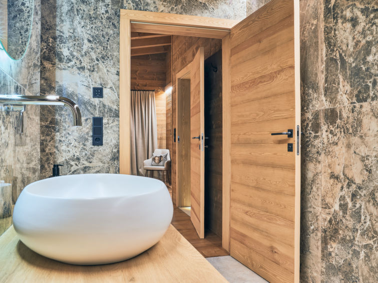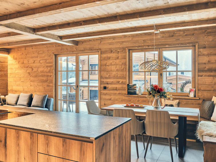 "Sissis Green Chalets/Kaiser Max", chalet 4-kamers 150 m2 op 2 verdiepingen. Luxueus en met veel hout ingericht: hal. 1 2-pers. kamer met douche/WC, TV en Digitale TV (Flatscreen TV). Groot woonkeuken (afwasmachine, 4 inductiekookplaten, broodrooster, waterkoker, magnetron, elektrische koffiemachine, kookeiland) met eettafel, open haard, TV en Digitale TV (Flatscreen TV), elektrische rolluiken. Uitgang naar het terras. Bovenverdieping: 2 2-pers. kamers, elke kamer heeft bad/douche/WC, TV en Digitale TV (Flatscreen TV). Uitgang naar het balkon. Groot terras 25 m2. Terrasmeubelen, barbecue, ligstoelen. Mooi uitzicht op de bergen. Ter beschikking: wasmachine, sauna, haardroger. Internet (WiFi, gratis). Parkeerplaats. Rookvrij huis. Maximaal 2 huisdieren/honden toegestaan. Privé ingang.