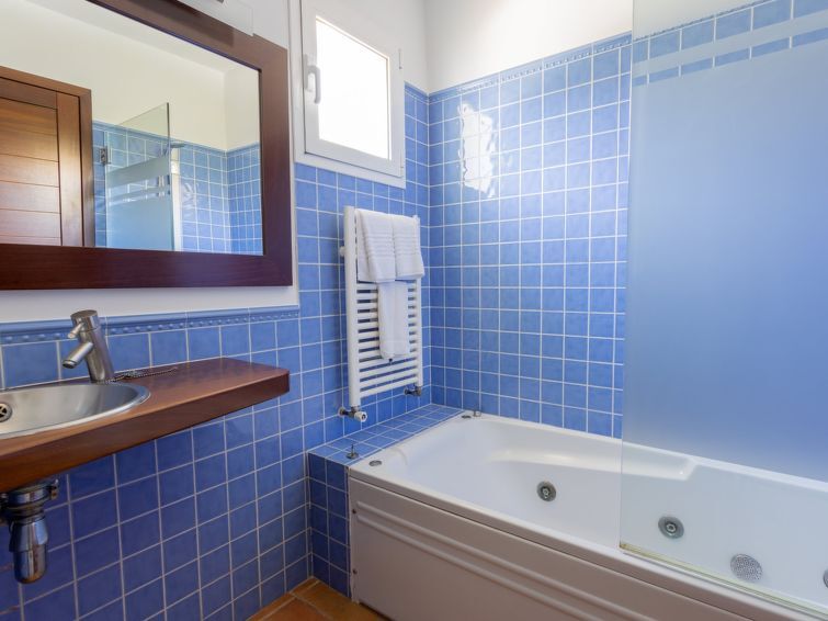 Son Bou: Mooi, comfortabele, luxueuze villa "Villas Finesse Type 1", omgeven door bomen. Aan de rand van de plaats Son Bou, rustige, zonnige ligging op een heuvel, 2 km van zee. Voor alleengebruik: terrein, tuin, openluchtzwembad (4 x 10 m, seizoensgebonden beschikbaarheid: 30.Apr. - 24.Okt.). Buitendouche, patio, terras. In het huis: internetaansluiting, Internet (WiFi), air-conditioning, wasmachine. Parkeerplaats op het terrein. Winkel 2 km, levensmiddelenwinkel 2 km, supermarkt 1 km, restaurant 200 m, bushalte "Son Bou" 450 m, zandstrand 2 km. Golfterrein (18 holes) 20 km, tennis 1.9 km, manege 1 km, kinderspeelplaats 300 m. Auto noodzakelijk. Geschikt voor families, geschikt voor senioren op aanvraag. Het objekt is geschikt voor 6 volwassenen groepen jongeren uitsluitend op aanvraag. Laden en lossen van de baggage is mogelijk bij het huis. Vliegveld 20 km van het huis.